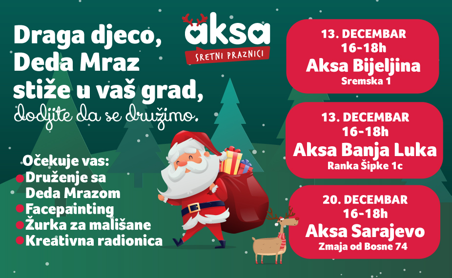 Svratiće u Aksa radnje, širi radost svima, dođi, uhvati ga — možda baš tvoj poklon ima!
